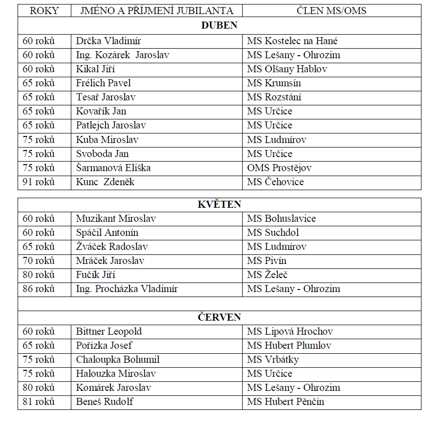 JUBILANTI DUBEN – KVĚTEN – ČERVEN 2022