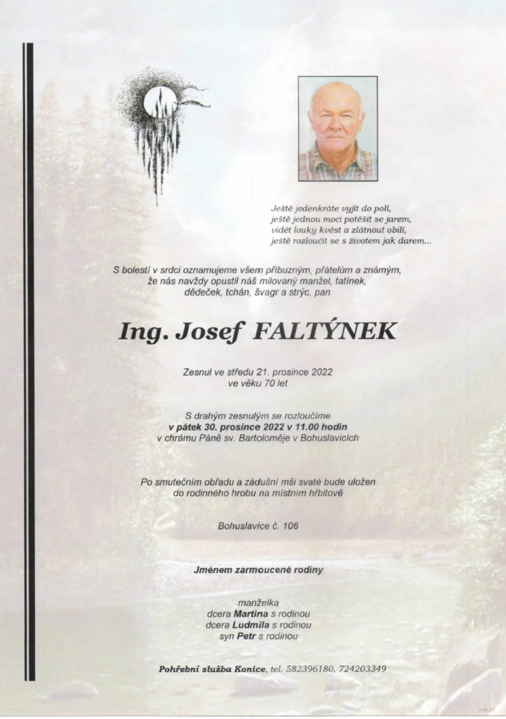 Smuteční oznámení – Ing. Josef Faltýnek
