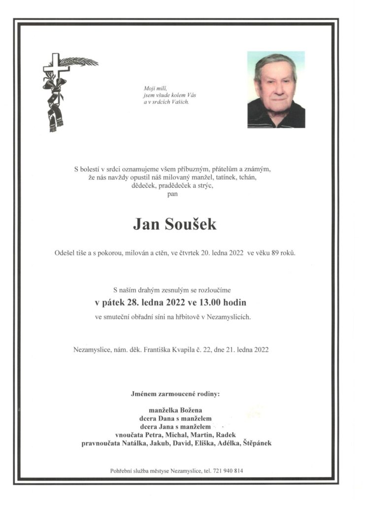 Smuteční oznámení – Jan Soušek