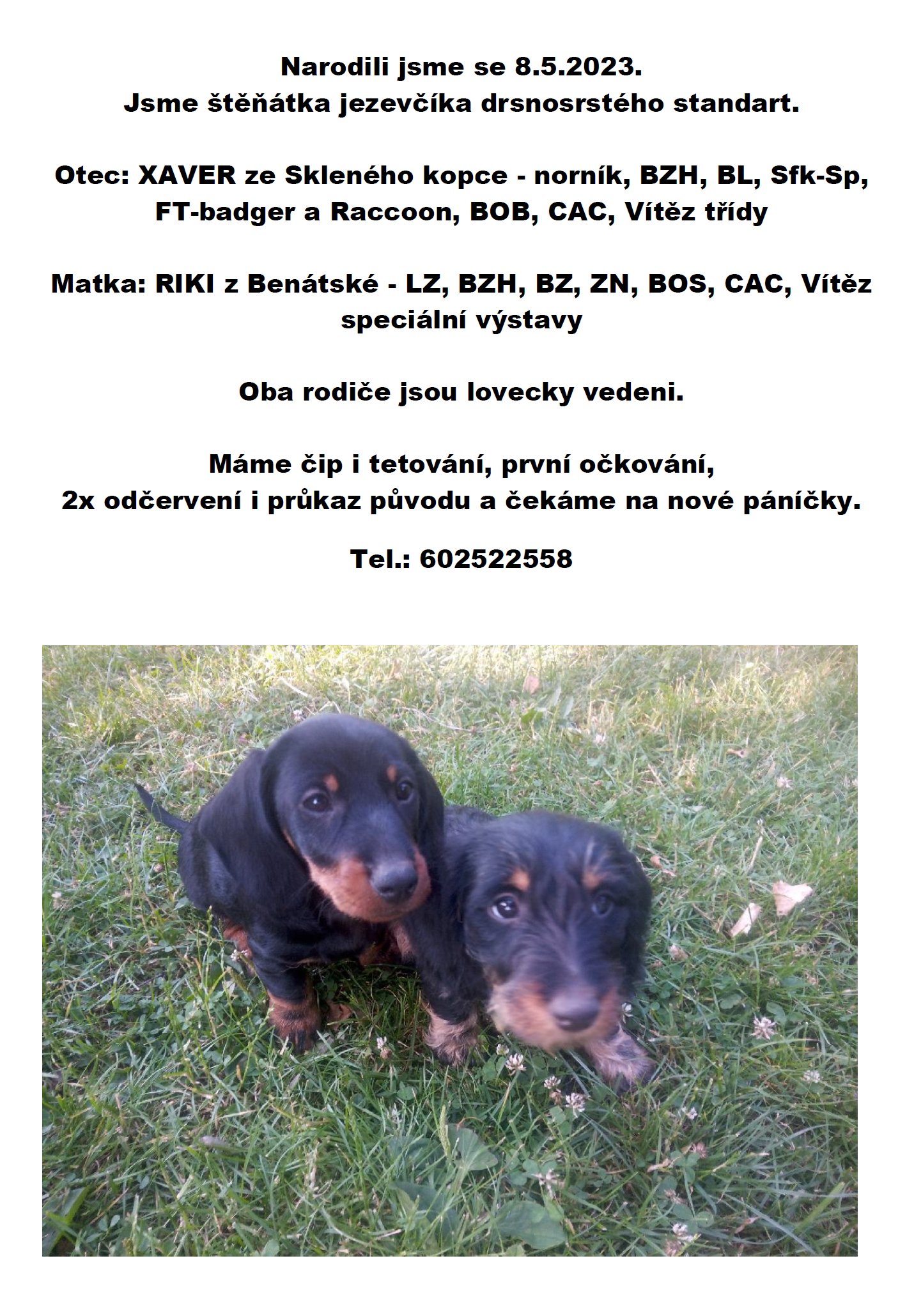 Štěňátka jezevčíka drsnosrstého standart