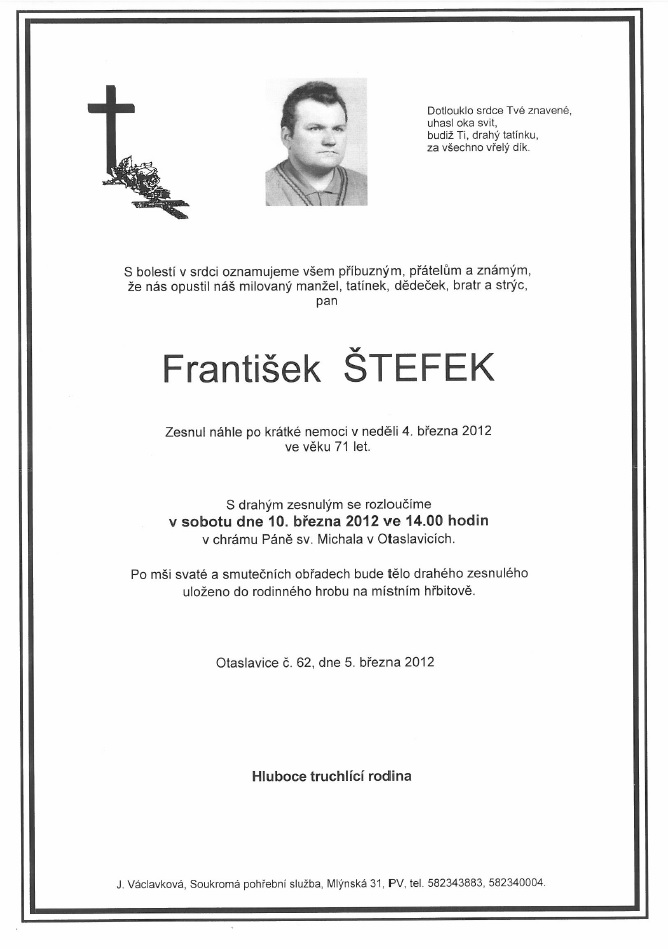 Úmrtí: František Štefek