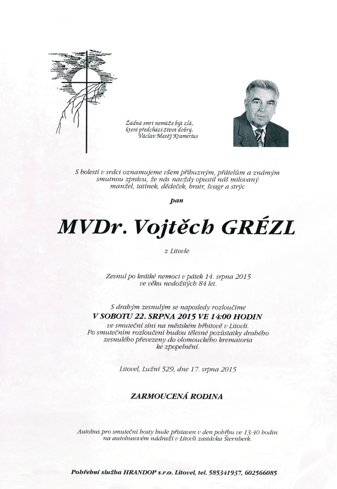 Úmrtí: MVDr. Vojtěch Grézl